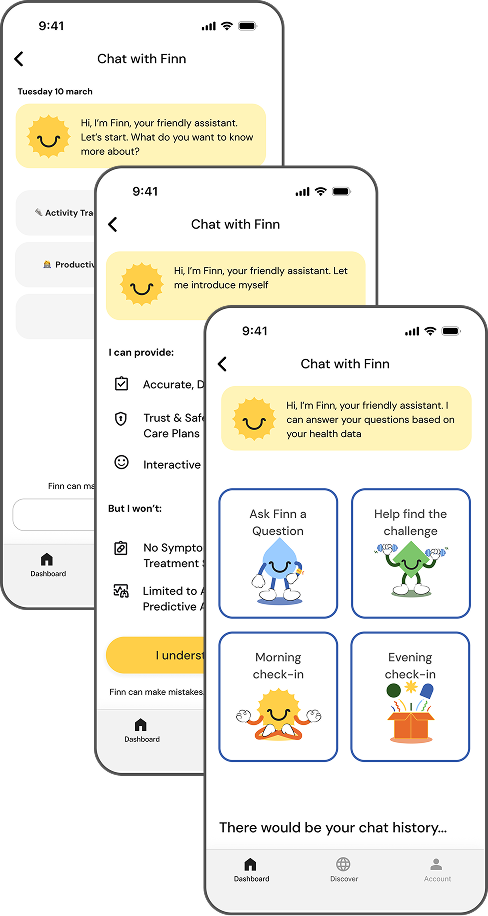 Finn is your AI wellness companion always here to listen, support, and guide you with empathy and care.